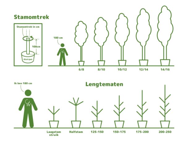 • Stamhoogte: 160 cm, 180 cm of 200 cm